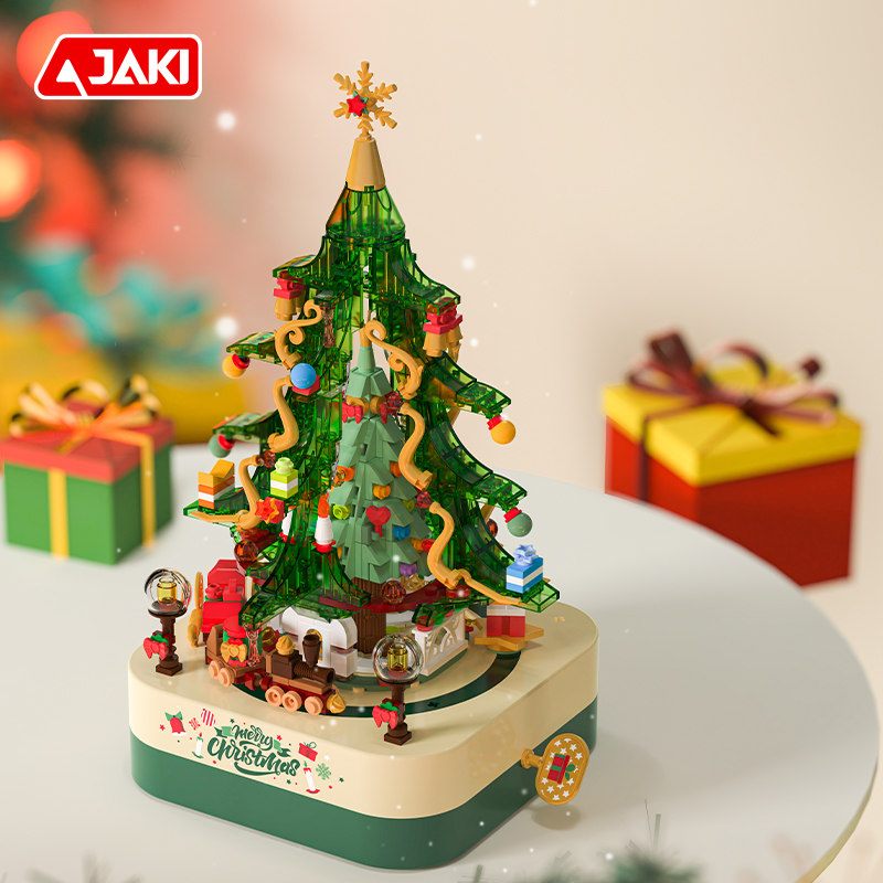 將積木與音樂盒完美結合,好玩又時尚。純機械動力設計更環保,音樂盒發條轉動帶動載滿禮物的車子開動,益智拼搭,時尚美觀,還能充當家居精品擺件。
